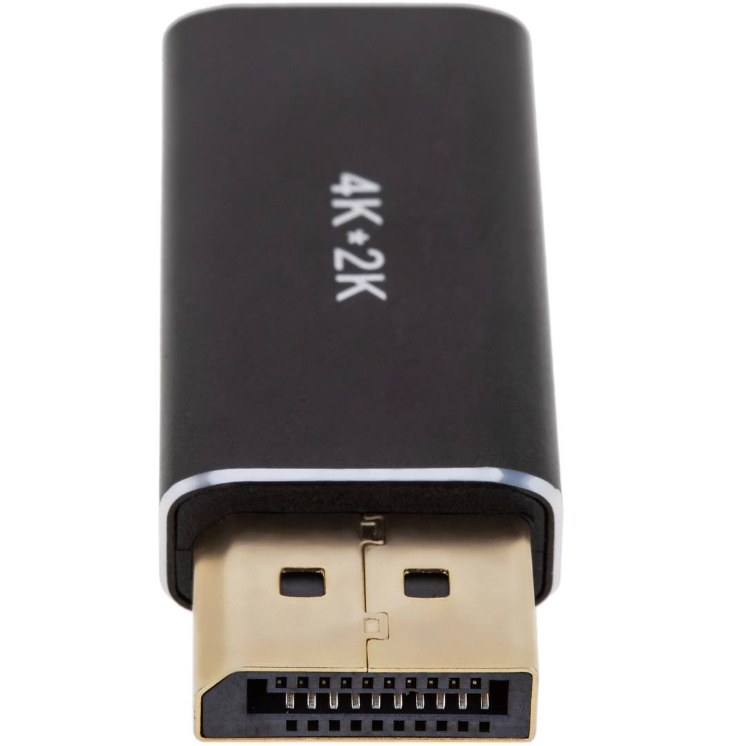 DisplayPort to HDMI digital video adapter. Easily connect an HDTV, monitor, or projector with an HDMI port to a DisplayPort video source (computer, DVD player, etc.). It allows you to transfer high-definition audio and video, with 1080p, FullHD, 2K and 4K quality.