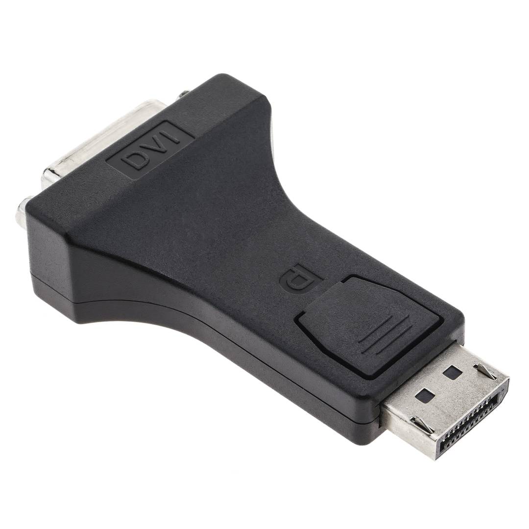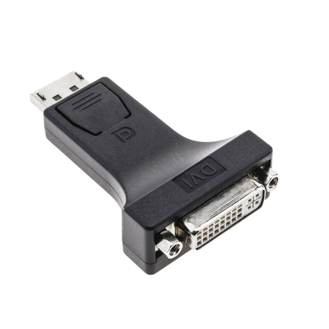 Small DisplayPort to DVI Digital (DVI-D) adapter. On one side it has a DisplayPort Male connector and on the other side DVI-D Female. Prepared for HDTV supporting resolutions up to 1080p and UXGA. Size: 70 x 40 x 17 mm.