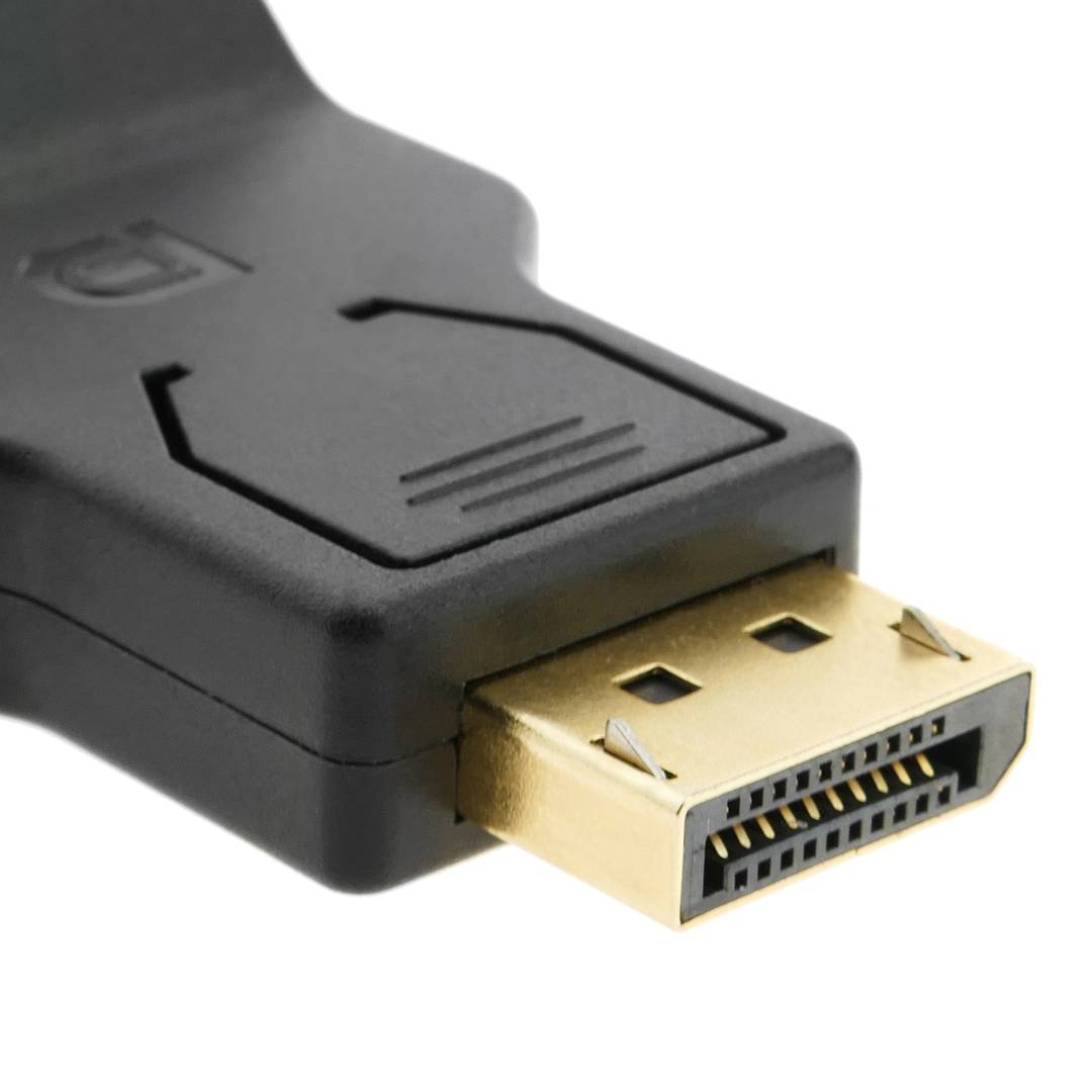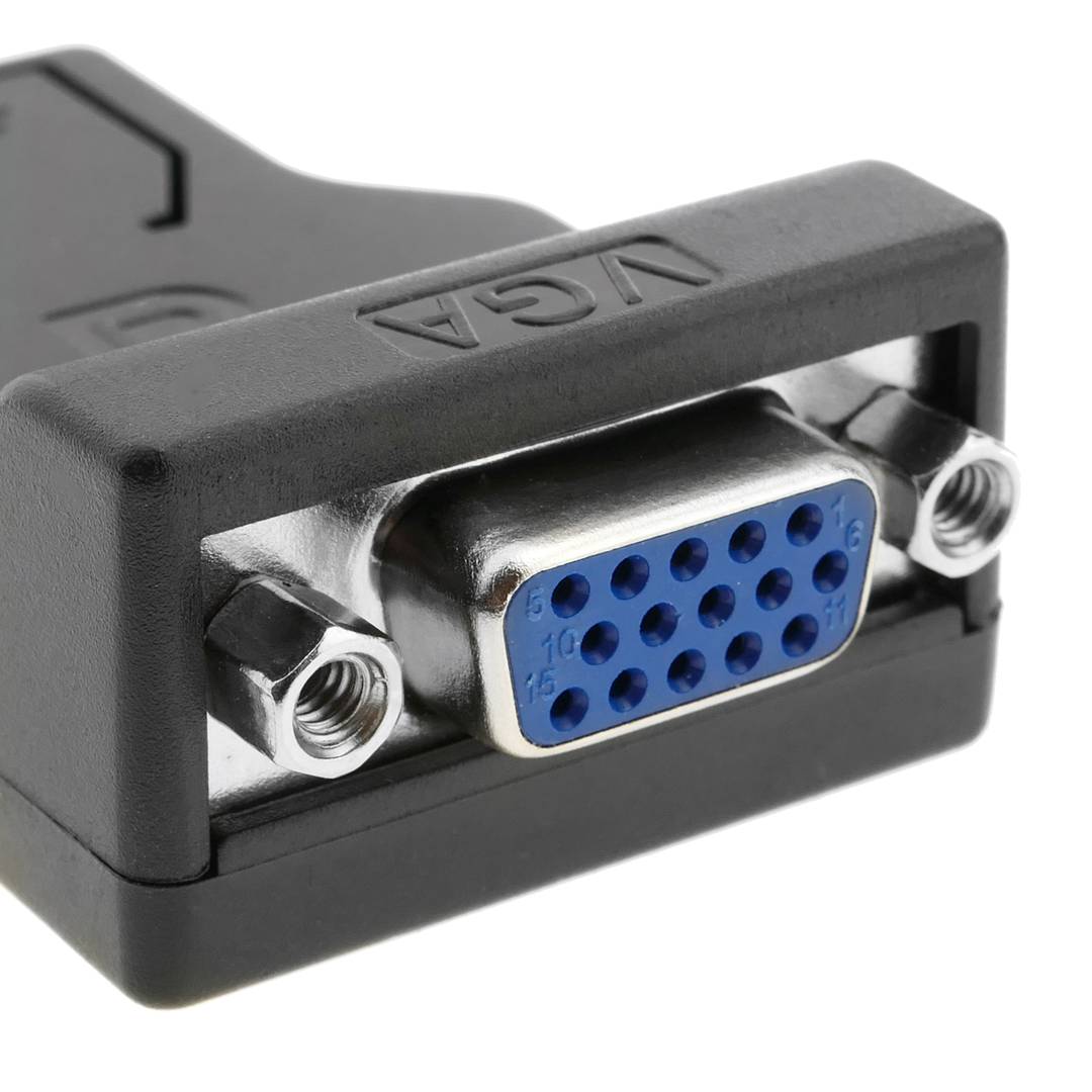 Small DisplayPort to VGA converter. On one side it has a DisplayPort Male connector and on the other side HD15 Female. This allows to use VGA monitors with computers or video sources that have a DisplayPort output. The internal electronics performs the conversion without the need for special controllers or power supply.