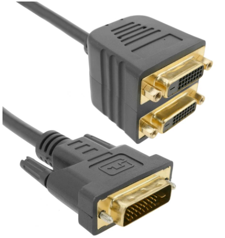 It is a DVI-D duplicator that has a DVI-D-Male connector on one end and on the other end it branches into two DVI-D-Female connectors.