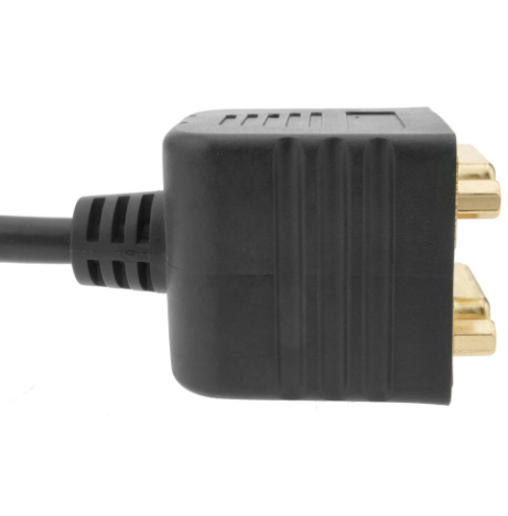 Passive duplicating cable from DVI-D. It is a DVI-D duplicator that has a DVI-D-Male connector on one end and on the other end it branches into two DVI-D-Female connectors. The correct operation in certain environments is not guaranteed. It does not pretend to be a signal duplicator but a DVI-D connector duplicator. Cable length with connectors: 30cm.
