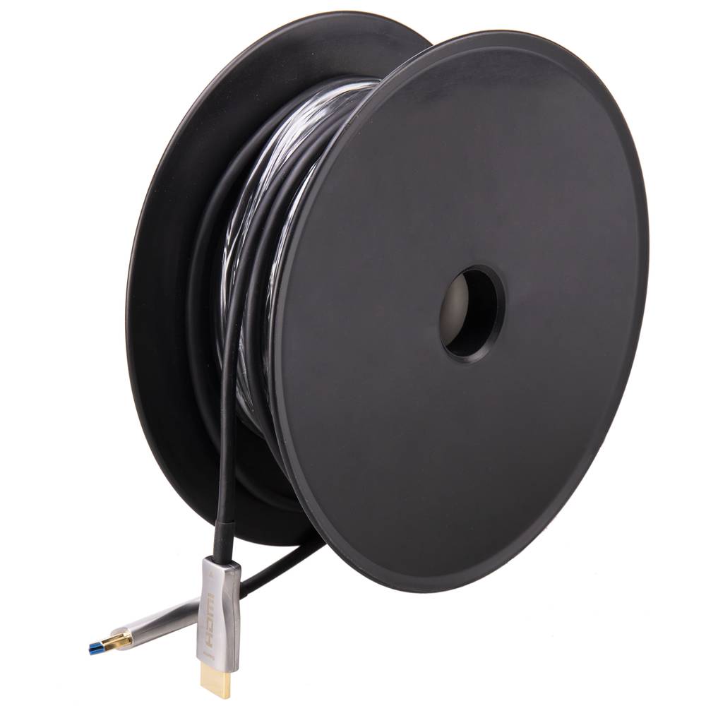 15m,20m,30m,50m,70m,80m,100m active fiber optic HDMI 2.0 cable. It has HDMI type A male connectors on both ends. Cable diameter: 5mm.