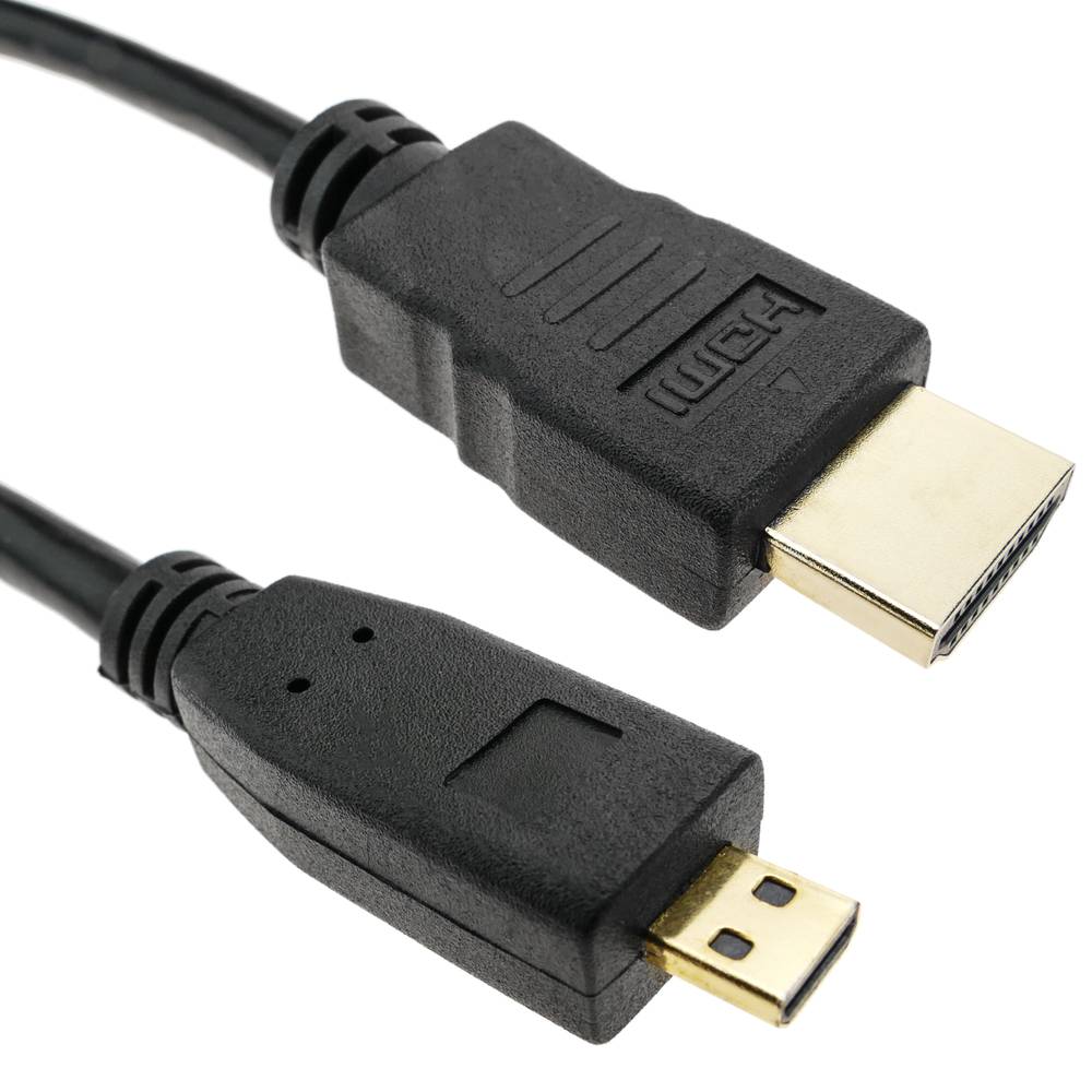 HDMI 1.4 cable that allows the transmission of digital audio, digital video and ethernet through the HDMI cable. At one end it has a male D-type HDMI connector and at the other end a male type A HDMI. The HDMI type D connector is very small and used in mobile terminals, netbooks, etc. The HDMI 1.4 standard supports full HD high-definition multimedia communications. Supports HDMI 1.3 resolutions and also supportsresolutions of up to 4096 x 2160 at 24 fps or 3840 x 2160 at 30 fps. It allows sending and receiving data through the 100 Mbps ethernet connection supported by the cable itself.