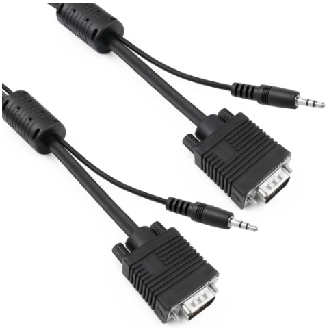 Quality cable that transmits VGA video signal and stereo audio.