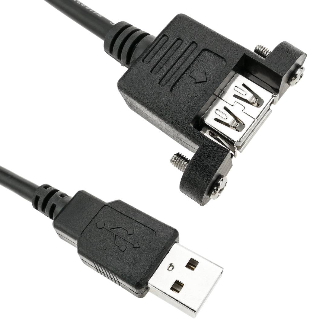 USB 2.0 cable with USB A male connector on one end and USB A female on the other.