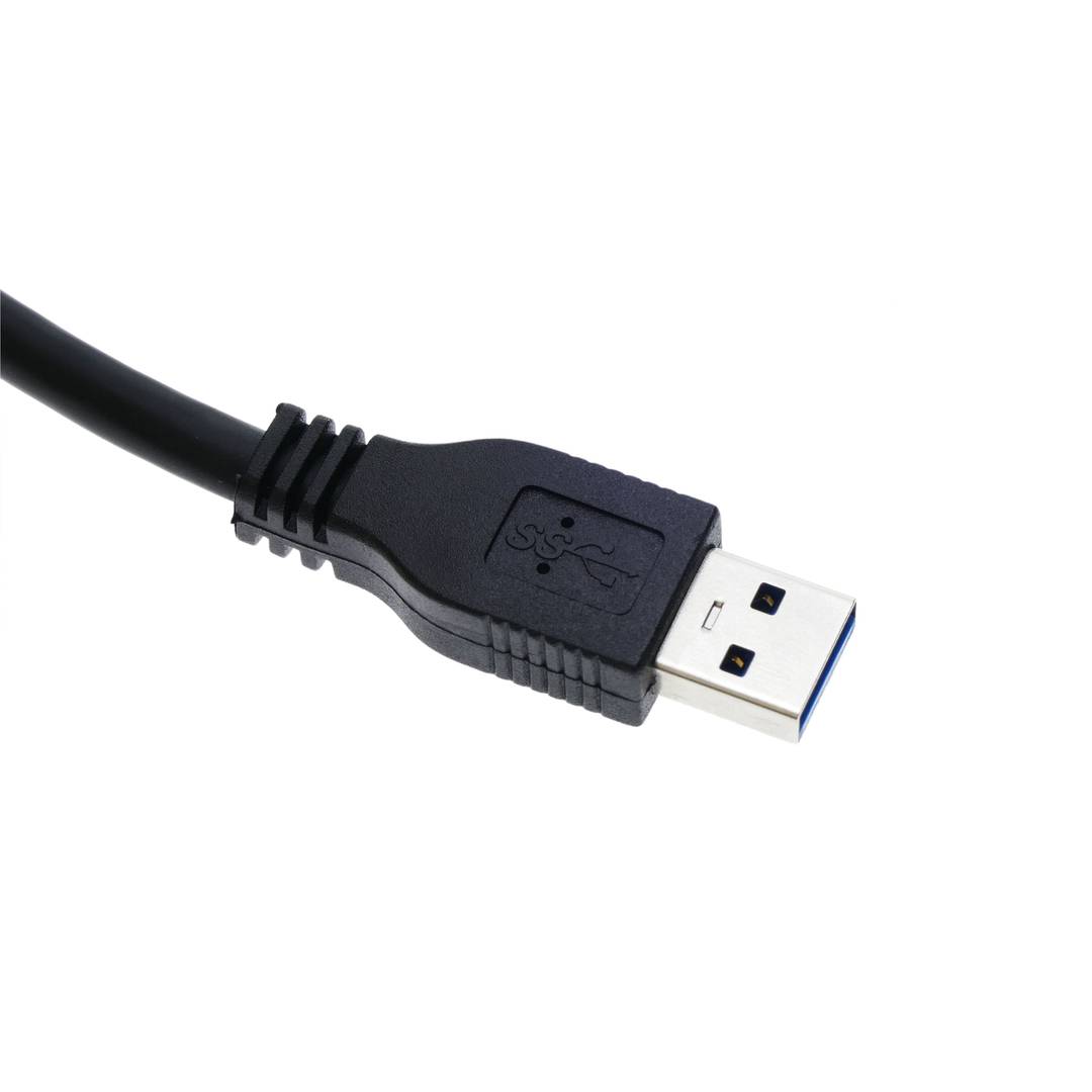 USB 3.0 or SuperSpeed USB cable based on USB 3.0 type A male connectors on one end and MicroUSB B male on the other end.