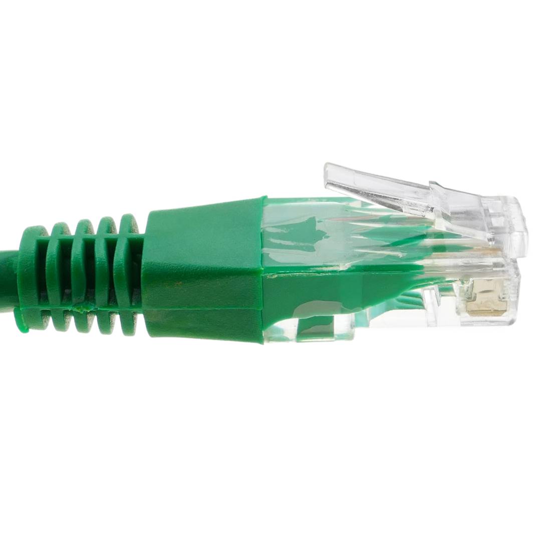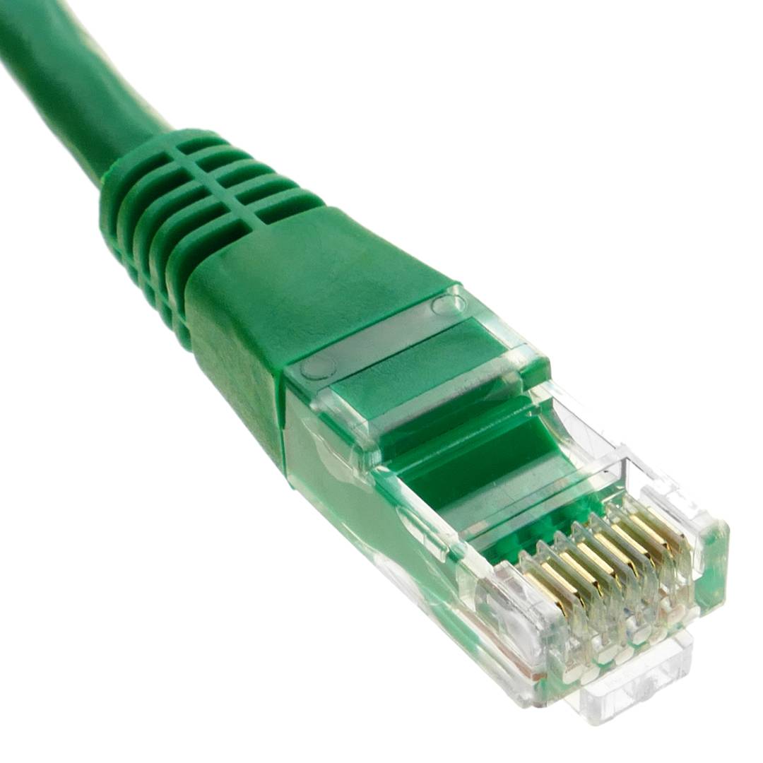 Flexible twisted pair cable (UTP) of Category 6 mounted with RJ45-Male connectors and rubber cover on both ends. It is a cable 0.25m,0.5m,1m,2m,3m,5m,10m,15m,20m,25m,30m long and green.